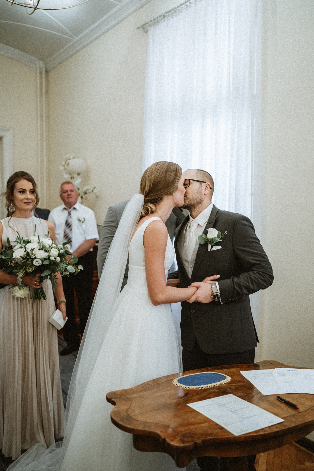 Ez a soproni esküvő tökéletes példája annak, amikor egy meghitt, érzelmekkel teli nap találkozik a város elegáns, történelmi hangulatával. A készülődéstől a templomi szertartáson át egészen a fergeteges esti buliig minden pillanat tele volt valódi érzelmekkel, finom részletekkel és őszinte kapcsolódással. Nem egy hagyományos esküvő volt, és pont ettől működött ennyire jól. A nap arról szólt, hogy a pár jól érezze magát, nem arról, hogy megfeleljen bármilyen elvárásnak. A bensőséges polgári szertartás és családi ebéd után egy lazább, barátokkal töltött este következett, és a két hangulat tökéletesen megfért egymás mellett.